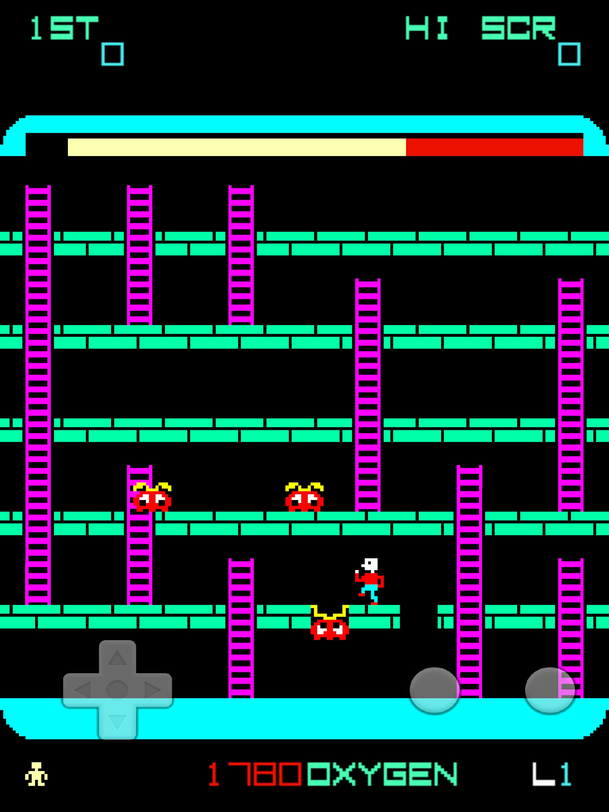 Remake del arcade Space Panic de Universal para iOS, primer juego arcade del genero plataformas para avanzar de nivel deberemos enterrar todos los aliens.